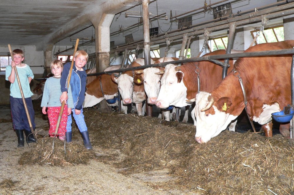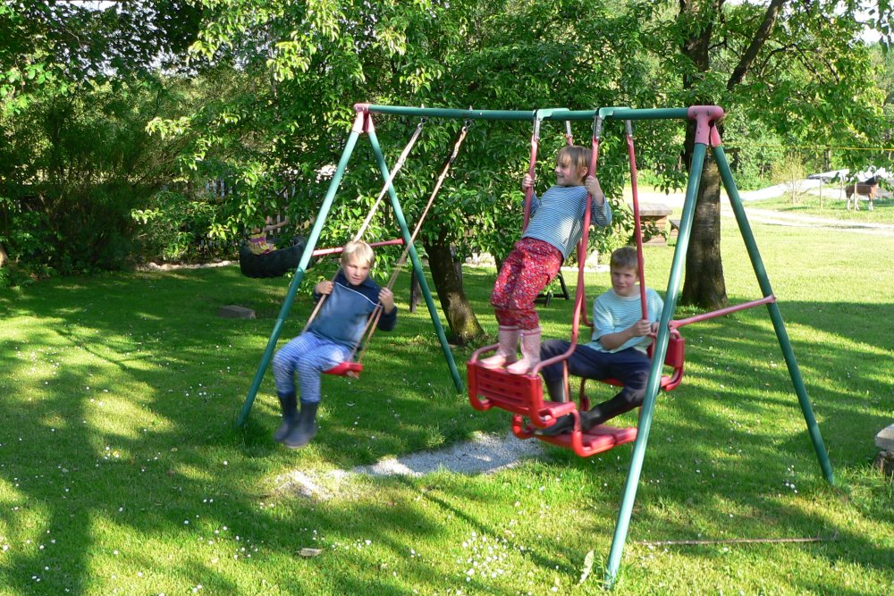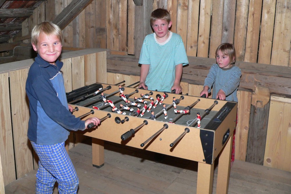 Ideal für Familien mit Kindern ist der Bauernhof mit Spielscheune (Trampolin, Tischtennis Kletterwand, Rutschbahn, Rollenrutsche, Kickerkasten, Dart…) und Kinderspielplatz im Freiem (Holzhaus mit Rutsche, Sandkasten, Schaukel, Traktor Reifenschaukel…). Gerne dürfen die Kids auch die Kühe im Kuhstall füttern auf den Ponys reiten, Hühner füttern und Katzen streicheln.
