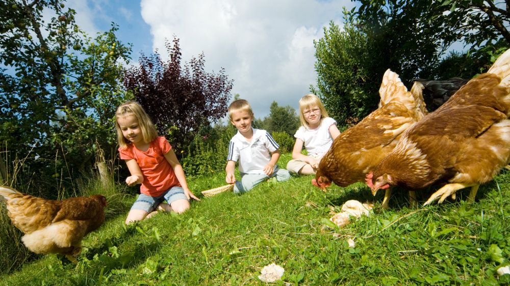 Bei schönem Wetter lockt der Kinderspielplatz mit Trampolin und Seilbahn, Go-Carts, Kinderräder und Roller stehen für rasante Wettfahrten zur Verfügung, natürlich dürft ihr auch beim Füttern unserer Tiere und bei der Stallarbeit helfen oder frisches Gemüse aus dem Garten ernten. Helle und freundliche Spielräume mit Kugelbad, Tischtennis und vielen bunten Spielsachen, oder unser Partyraum mit Billard sorgen auch bei schlechtem Wetter für Abwechslung.