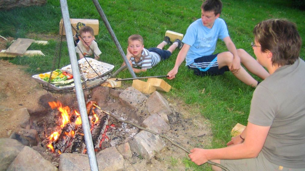 Nach einem Tagesausflug zu den vielen Sehenswürdigkeiten und Aktivitäten in der nahen und weiteren Umgebung geht´s dann noch in den Stall zum Kälbchen füttern. Wollen Sie den Abend romantisch ausklingen lassen, dann genießen Sie die laue Sommernacht am knisternden Lagerfeuer, oder am offenen Kamin in unserer Grillhütte.