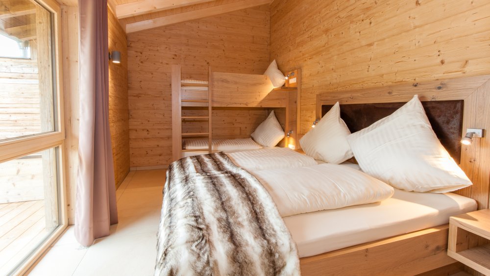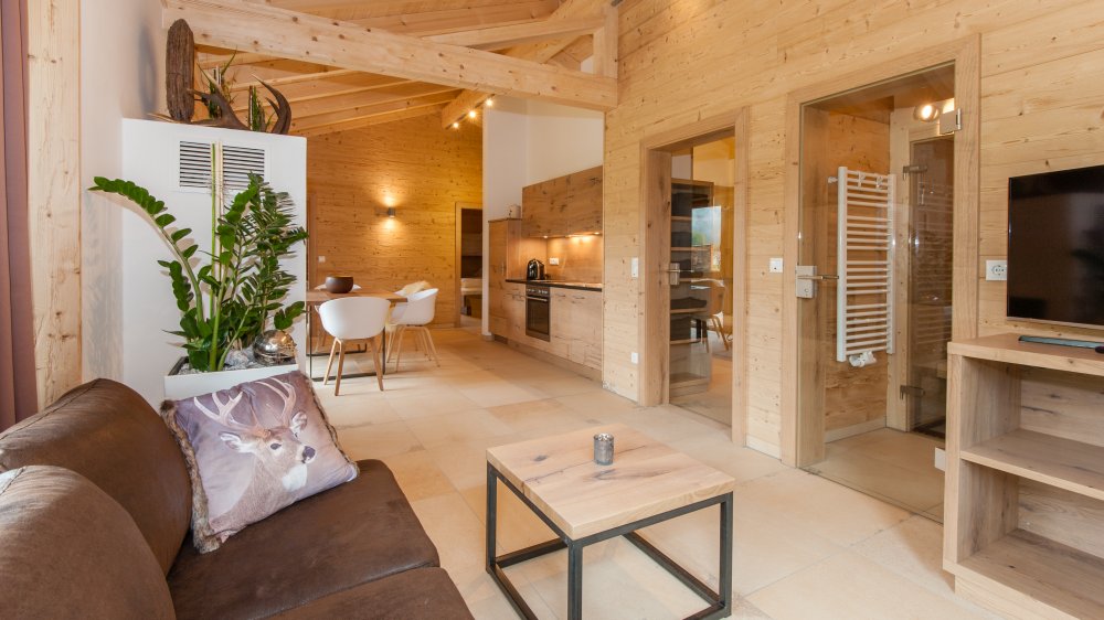 Die mit Naturmaterialien eingerichteten Romantik Chalets sind komplett ausgestattet mit geräumiger Wohnküche (inkl. Kaffeeautomat + Spülmaschine) mit bodentiefer Fensterfront, zwei urige Schlafzimmer, Wellnessbad, exklusive Designsauna, einen Heizkamin für romantische Stunden im Wohnbereich und eine Erlebnissauna sowie Badewanne auf der Sonnenterrasse. Auf Wunsch können Sie sich sogar mit einer Massage direkt im Ferienhaus verwöhnen lassen.